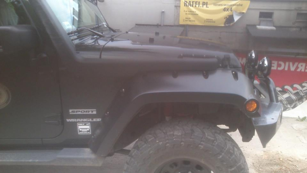 Zawieszenie TRAILMASTER , stosowne oponki, zderzak i snorkel TJM, tylni zderzak Warna z dedykacją od Adama Małysza, poszerzenia Bushwacker to zmaterializowane serce właścicielki Ewy do jej ukochanego Wranglera :)